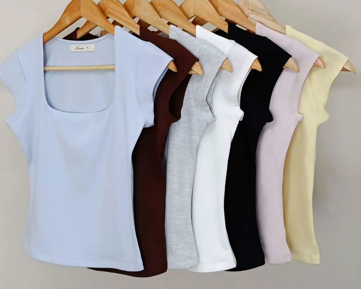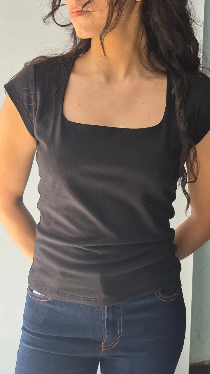 Remera de calce adherente manga corta con cuello cuadrado