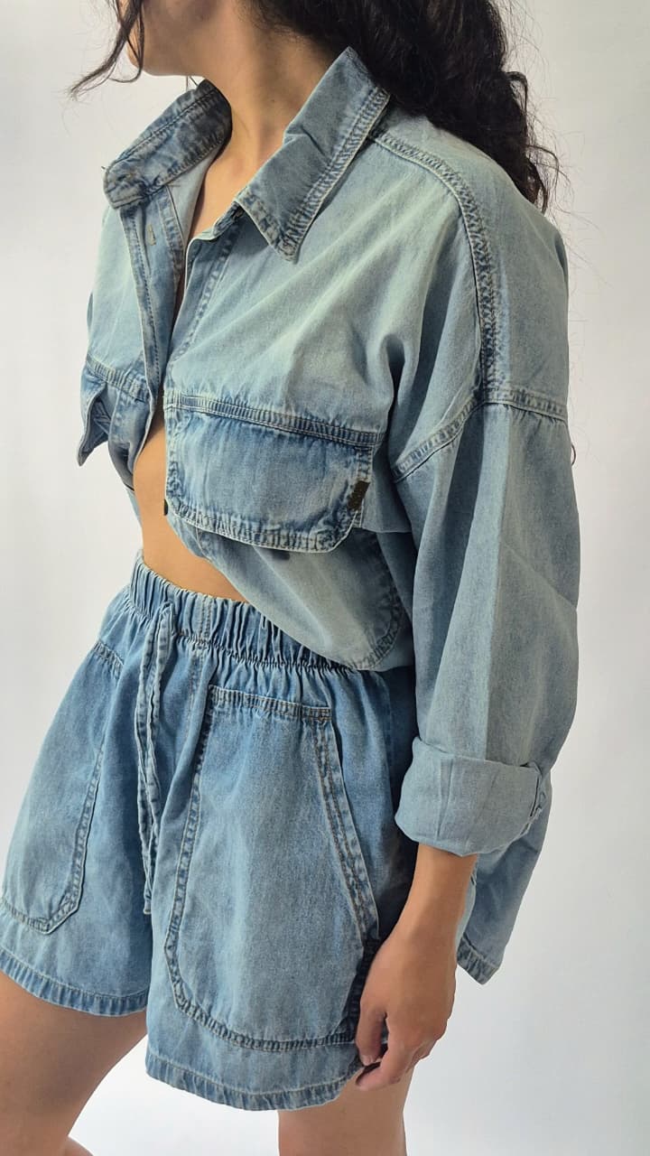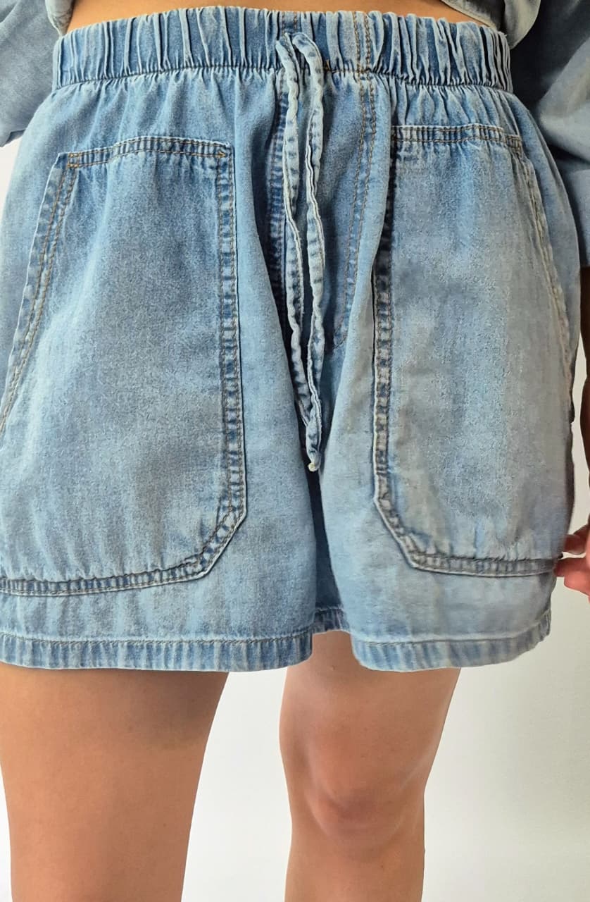 Short rigido camisero con elastico, bolsillo plaque