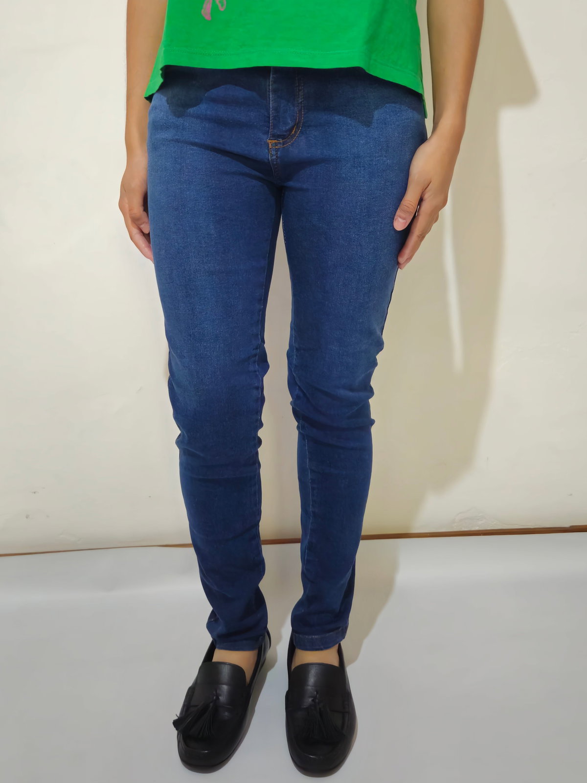 Denim elastizado, tiro medio.