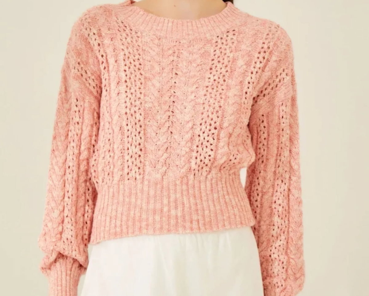 Para un estilo rom谩ntico llevalo con una falda midi en color rosa claro para un look monocrom谩tico texturizado y unas ballerinas