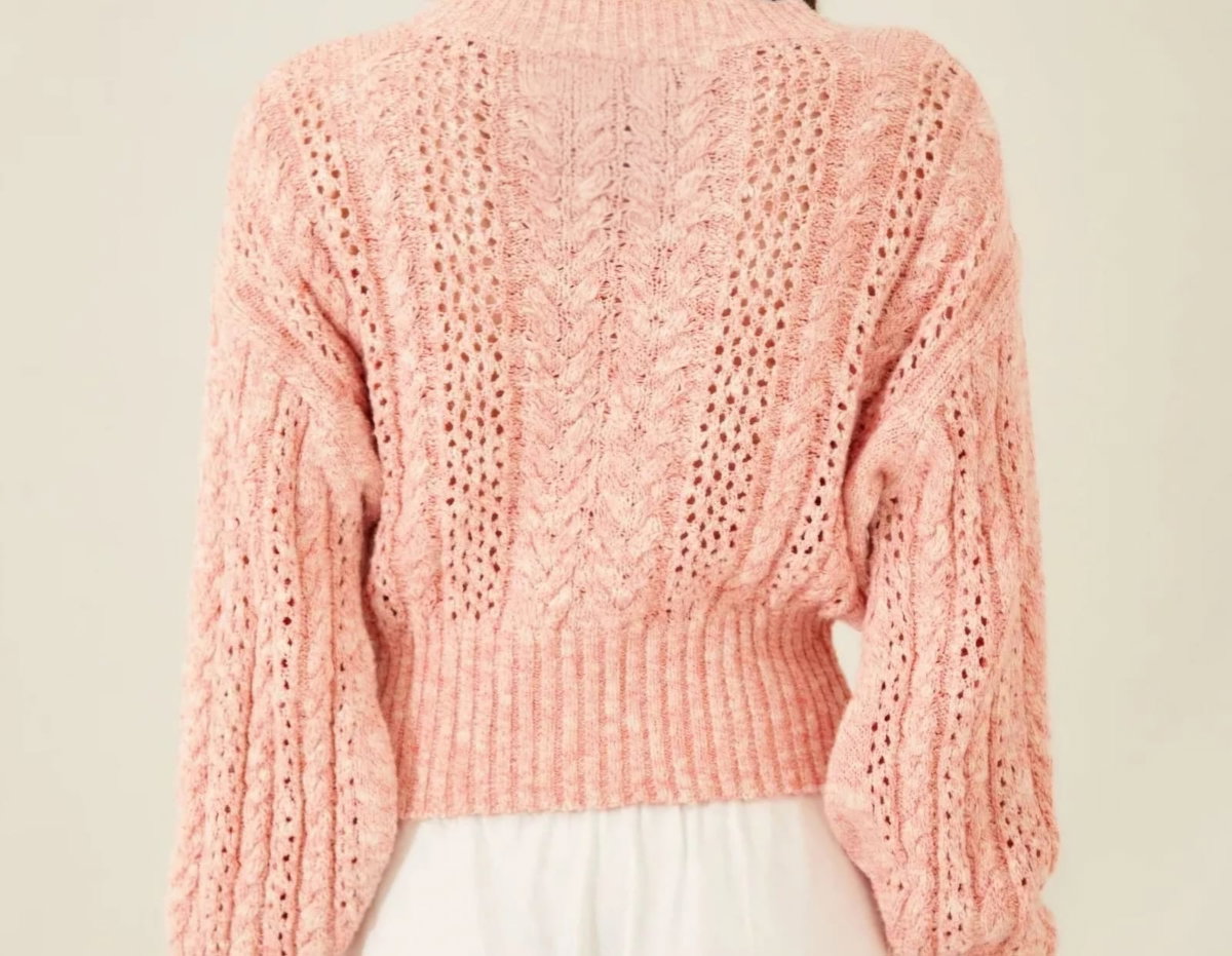 Las mangas son ligeramente holgadas y terminan en pu帽os acanalados ajustados, reforzando la est茅tica rom谩ntica.